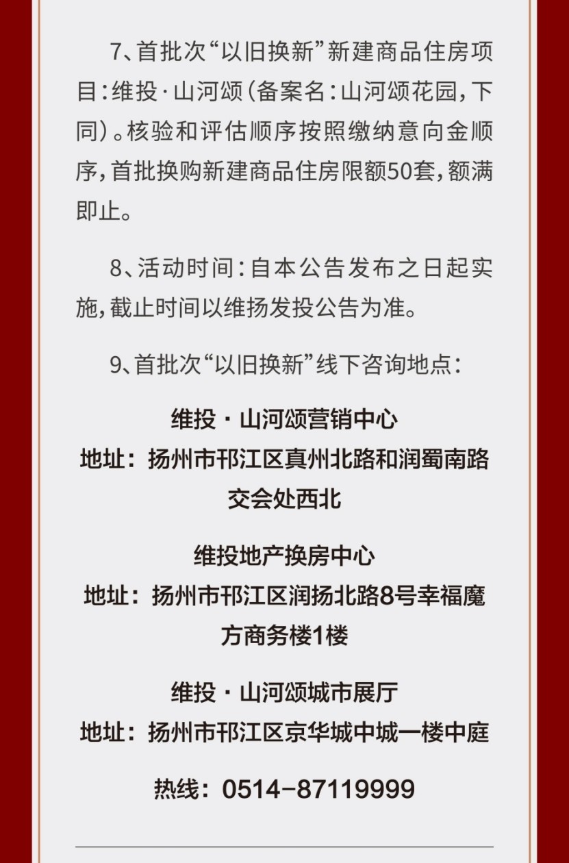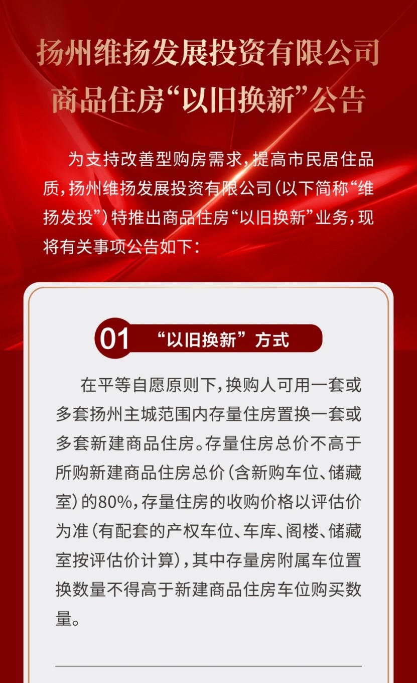 揚(yáng)州維揚(yáng)發(fā)展投資有限公司商品住房“以舊換新”公告