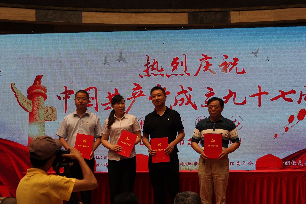 為隆重紀(jì)念中國共產(chǎn)黨建黨97周年,回顧中國共產(chǎn)黨走過的光輝歷程,歌頌建黨以來的豐功偉業(yè)和輝煌成就,激發(fā)居民愛黨、愛祖國、愛家鄉(xiāng)的熱情,殷巷社區(qū)黨總支和居委會決定舉行慶“七一”文藝演出。活動開始由殷巷社區(qū)黨總支書記趙龍致活動開幕詞,隨后由殷巷社區(qū)代表與西區(qū)新城管委會代表、我公司代表、江蘇銀行代表簽訂共建協(xié)議,實現(xiàn)社區(qū)與單位在黨的組織建設(shè)上聯(lián)建,在社區(qū)重大工作上聯(lián)做,在公益事業(yè)上聯(lián)辦,在黨員教育管理上聯(lián)管,在黨建主題活動上聯(lián)動,在精神文明創(chuàng)建上聯(lián)創(chuàng),在社區(qū)文化活動上聯(lián)誼。